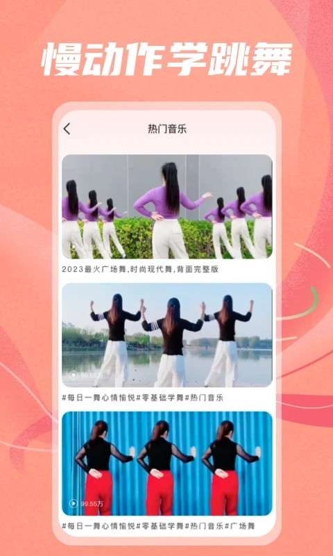 1、海量视频资源:提供近百万热门广场舞视频,涵盖流行、民族、古典等多种风格,满足不同用户的个性化需求。