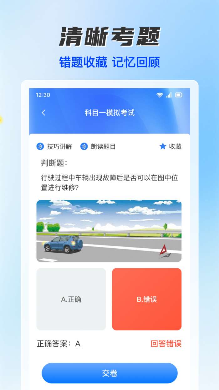 驾考题库通app是一款驾驶考试练习和学习软件。提供非常丰富的驾驶考试内容,实时更新一至四科国家和地方题库,让您高效备题和练习,充分利用碎片化的时间。根据学生的不同情况制定一套学习计划。在它的帮助下,你可以有效地复习。同时,遇到比较经典的题目时,可以保存起来,在考前集中复习。它不仅包含了相对完整和全面的题库资源,还提供了多种学习模式和实用功能,以满足不同学生的学习需求。