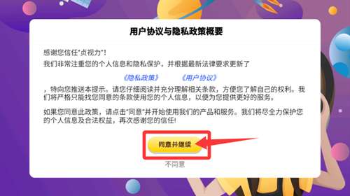 1、首先在用户协议界面点击同意并继续,进入用户登录页面。