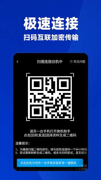 1、操作极其简单:只需打开即可使用。它只需要两个步骤-选择“我是旧手机”或“我是新手机”,扫描代码或单击链接开始转移。
