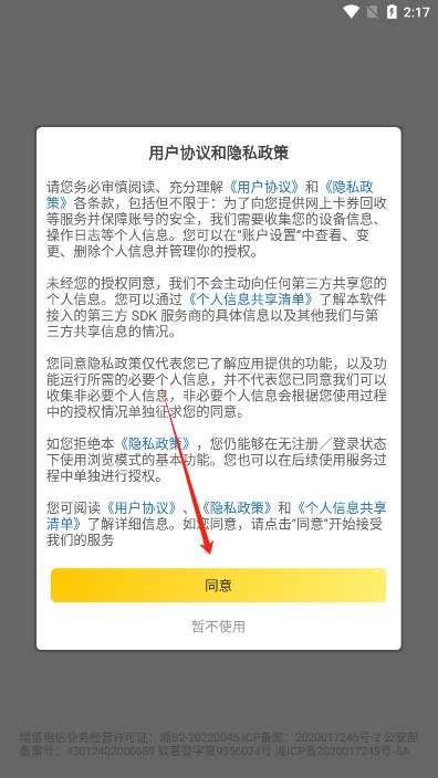 2、首次使用时,需要定制并允许相关的隐私协议。