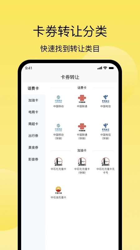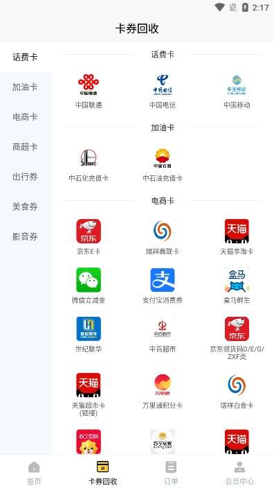 3、成功进入主页后,我们可以看到各种类型的卡片回收功能。