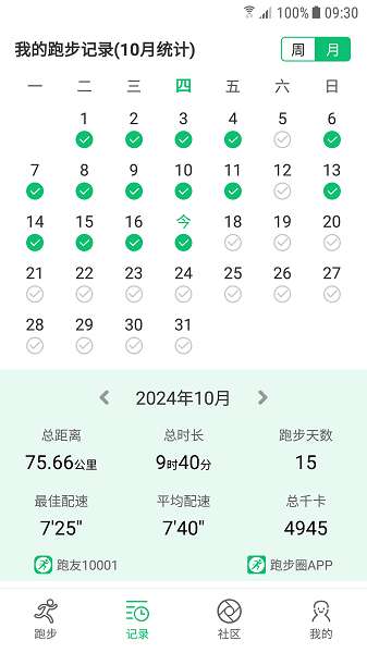 5、通过我的跑步记录选择时间,找到历史的运动信息。