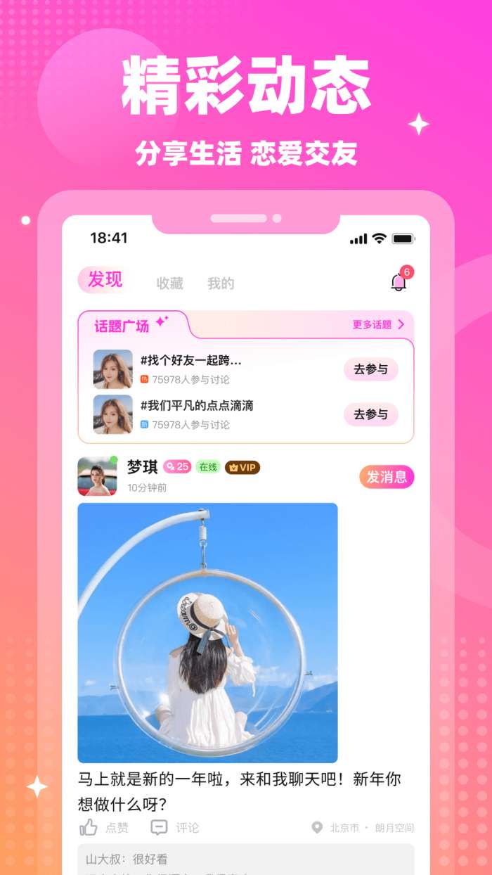 情遇软件内设有丰富多彩的广场互动频道。在这里,用户可以轻松浏览到各种每日新鲜动态,无论是生活趣事、心情分享还是兴趣爱好,都能一目了然。这不仅为用户提供了更多聊天互动的话题,还让大家能够通过评论点赞等方式,进一步增进彼此之间的了解和友谊。