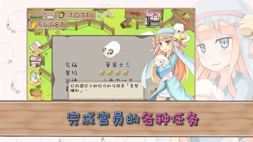 还有一些任务是需要你去完成的,完成这些任务你就会有很多的奖励,可以获得提升自己的等级,扩大自己的羊圈,领养更多的小羊。