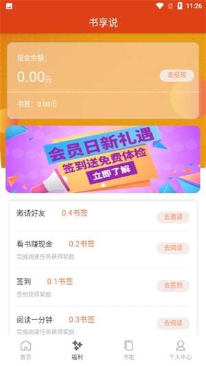 1.您可以邀请您的朋友,然后你们一起进行阅读,当他注册完成后您是可以获得福利的;