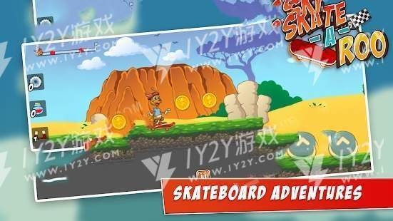 滑滑板的袋鼠游戏中玩家操控一只袋鼠进行闯关,游戏中主要以卡通风格画面为主,操作简单,只有两个按键,左边的可以加速,右边的则是跳跃翻转,任何人都能快速上手,需要躲避关卡中的障碍物,同时收集硬币和飞旋镖,它们可以帮助玩家快速的过关,来下载一起玩吧!