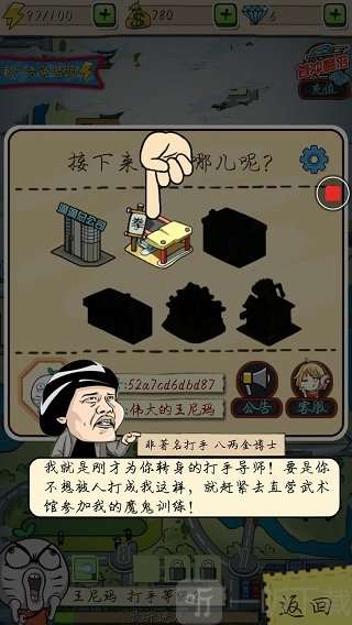 8. 点击这个拳,会发现里面空荡荡的,并无特殊技能与打人方式。升级需从这里开始,每一级的技能都不一样,得靠你自己慢慢琢磨,并通过打通关来获取。