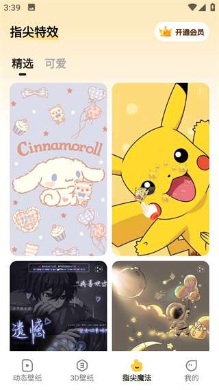3、点击下方工具栏指尖魔法,有精选和可爱两类,你可以自由选择。