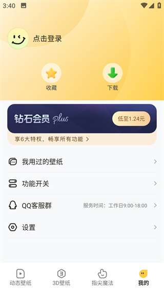 4、点击下方工具栏我的,可以查看收藏和下载,还可以查看我用过的壁纸。