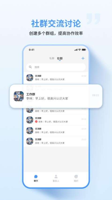 2.软件的群组功能支持多人在线交流,促进团队协作,提高工作效率。