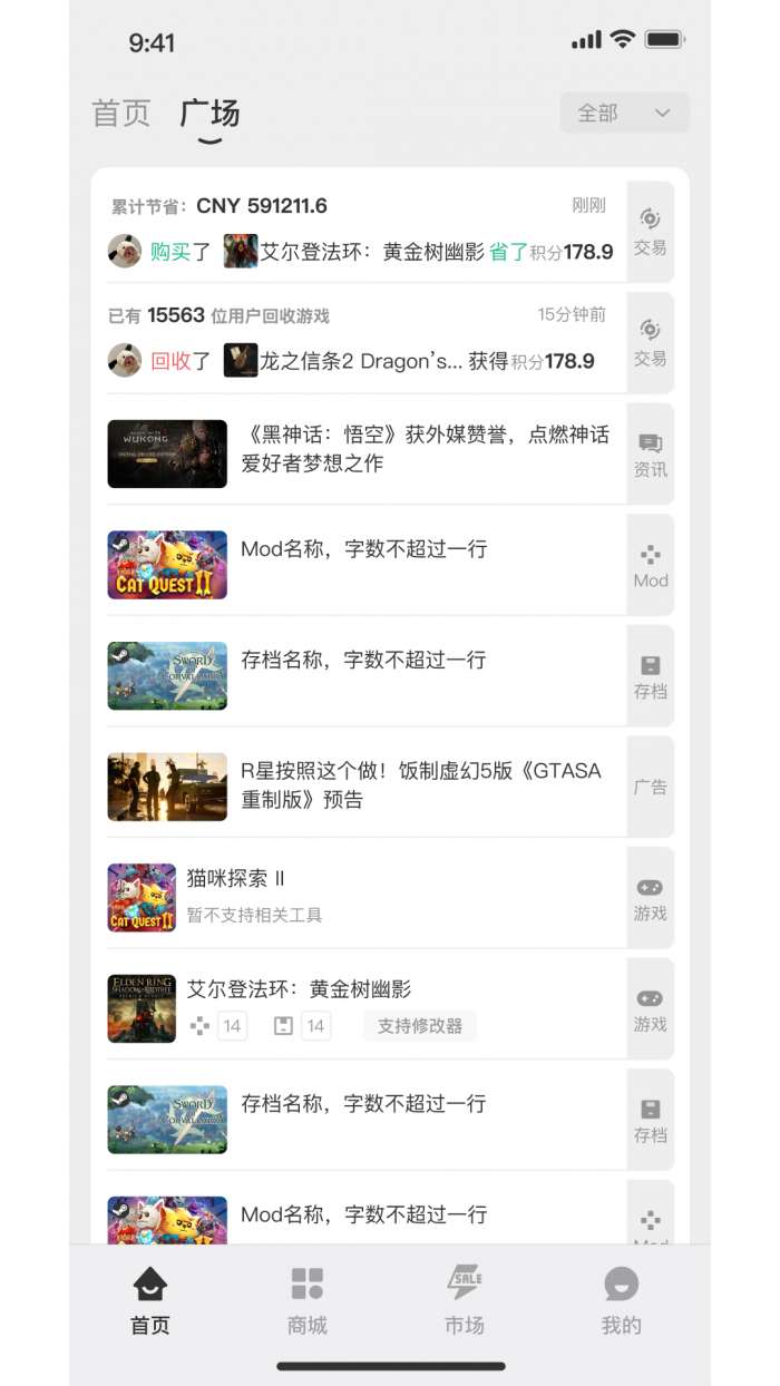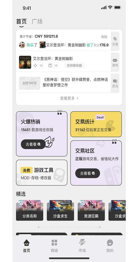 4、在市场界面,了解交易资讯和动态,进行账号的回收出售。