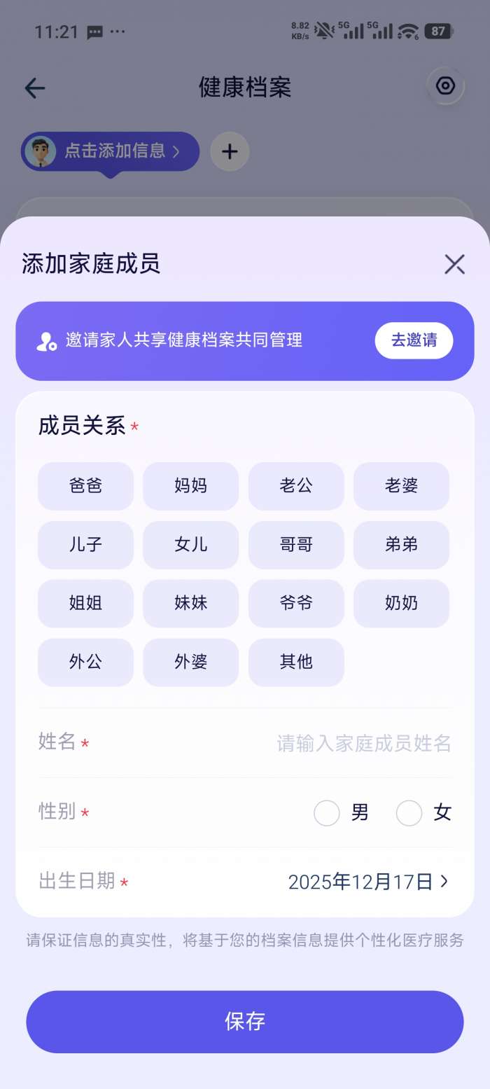 统一管理你和家人的健康信息,长期记录与追踪,健康变化一目了然。