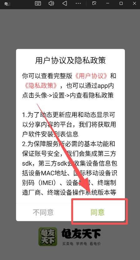 1、首打开应用程序,阅读并同意用户协议和隐私政策。