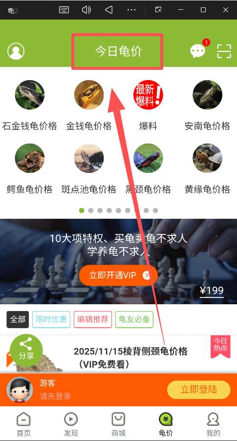 4、进入“海龟价格”部分,尝试查看价格。如果需要详细的数据,可以考虑VIP会员资格。