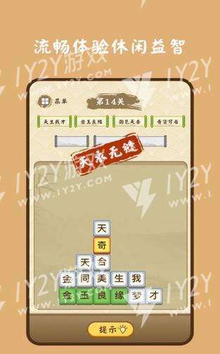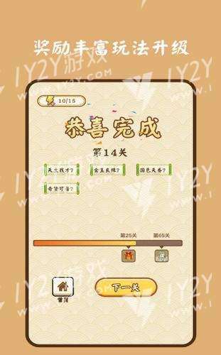 2、这不仅是一个简单的闯关游戏,更是展现自己文采的大好时机,和更多的好友比拼自己的知识阅历。