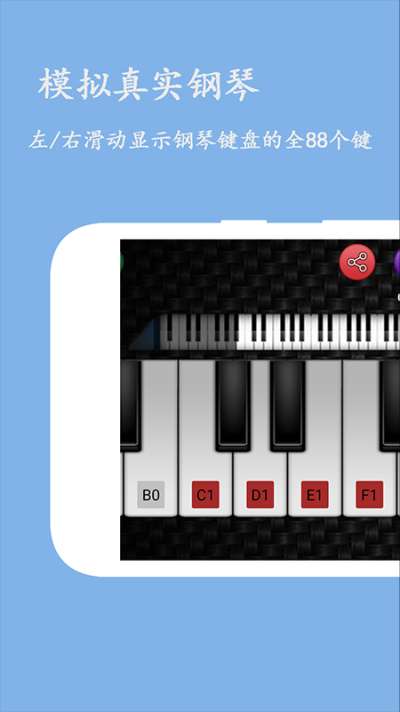模拟钢琴的音质和音色,您可以通过该应用播放出色的作品,然后保存录音并与朋友分享;