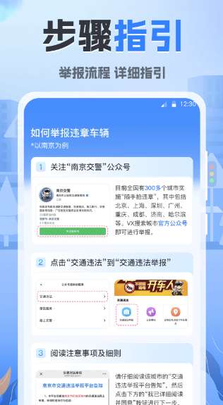 3、操作步骤 的详细违章照片举报流程,帮助用户轻松完成举报和曝光。