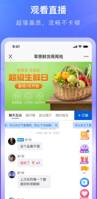 3、在直播间里,您可以自由互动,也可以预订和注册,方便快速购买。