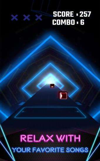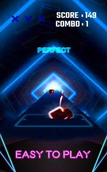 方块节奏3D就像是在玩AR游戏一样的,玩家们自己跟着任务关卡的音乐节奏来完成每一个关卡的节奏方块切割。分数会累计在上方显示给你,方块上面会有箭头显示向上滑动还是向左向右向下。简单的挑战的方块颜色只有一种,大家根据你的游戏经验成熟度选择不同的音乐,之后的歌曲会在你提升等级的时候解锁。每一个都是一样的三颗星星开始收集,这里会提供三次漏点的机会。