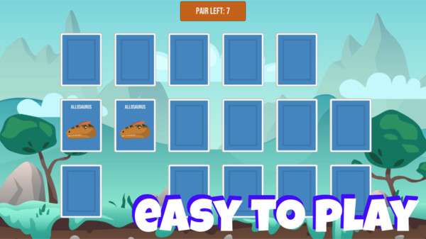 匹配恐龙游戏安卓版是一款可以在这里不断的去锻炼你的记忆里的游戏,你要将这里的拼图都拼凑完整,还有很多的关卡你是可以在这里进行闯关的,你要利用很短的时间去记住每一个图片,然后这些图片就会被打乱,你还要在一定的时间里面讲拼图拼凑完整。