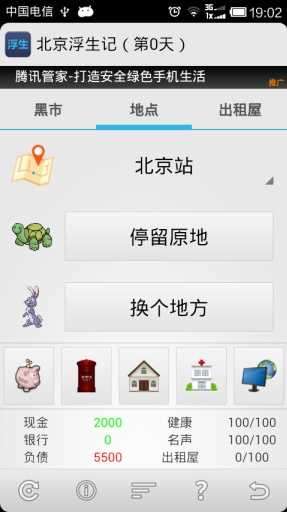 在“北京浮生记”游戏中,运气很重要,但是正确的策略是起决定的因素。一般的策略如下,但是更多的诀窍有待您在实践中自己发现。