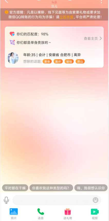 暖识是一款受欢迎的在线聊天软件,为用户营造真诚、温馨的社交环境,每个用户都可以找到志同道合的伙伴,分享生活中的小快乐,为自己孤独的心灵找到温暖的避风港,还能快速通过智能匹配算法,根据用户的兴趣、个性特征和社交需求,推荐最合适的聊天伙伴,提供安全舒适的社交体验,让每一次交流都充满温暖,让每一颗孤独的心都找到归宿,还能轻松找到各种有趣的聊天话题,轻松与喜欢的ta进行互动聊天。