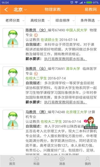 3、软件为用户提供了大学生家教,星级教员,专业老师多种不同的家教选择。