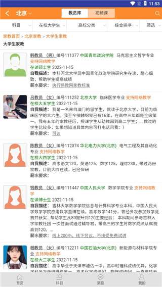 4、点击进入大学生家教,用户可以看到各种优质的家教,用户可以随意选择。
