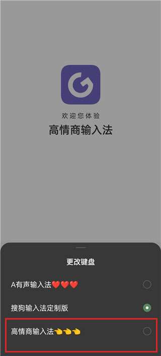 3、在更改键盘里选择高情商输入法。