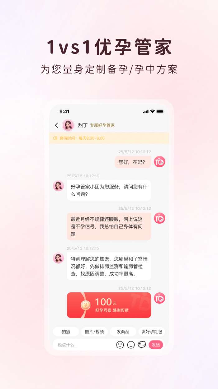 3、可以体验专业的健康管家服务定制个性化备孕方案。