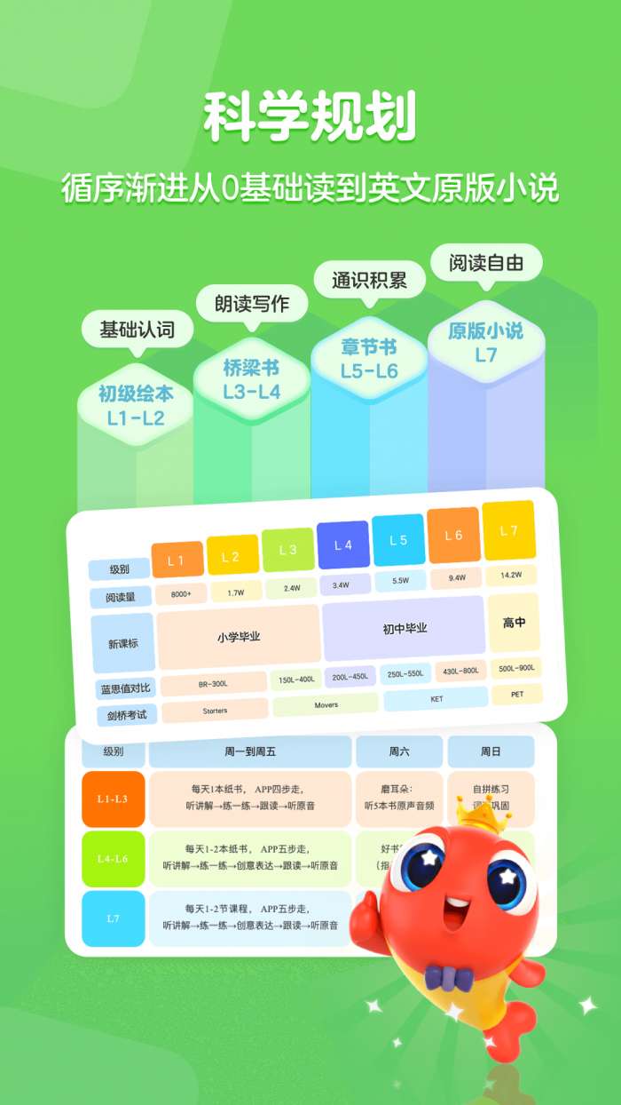 伴鱼阅读营是一款专为儿童量身打造的线上绘本阅读平台,它巧妙地将线上数字阅读与传统的纸质阅读模式相结合,为孩子们提供了一个既现代又富有温度的阅读空间。平台上汇聚了海量的绘本资源,这些资源不仅覆盖了国内外各大知名出版社的精品内容,还根据儿童的认知发展特点进行了细致的分级处理,确保不同年龄段的儿童都能在这里找到适合自己的阅读材料,满足他们多样化的阅读需求。