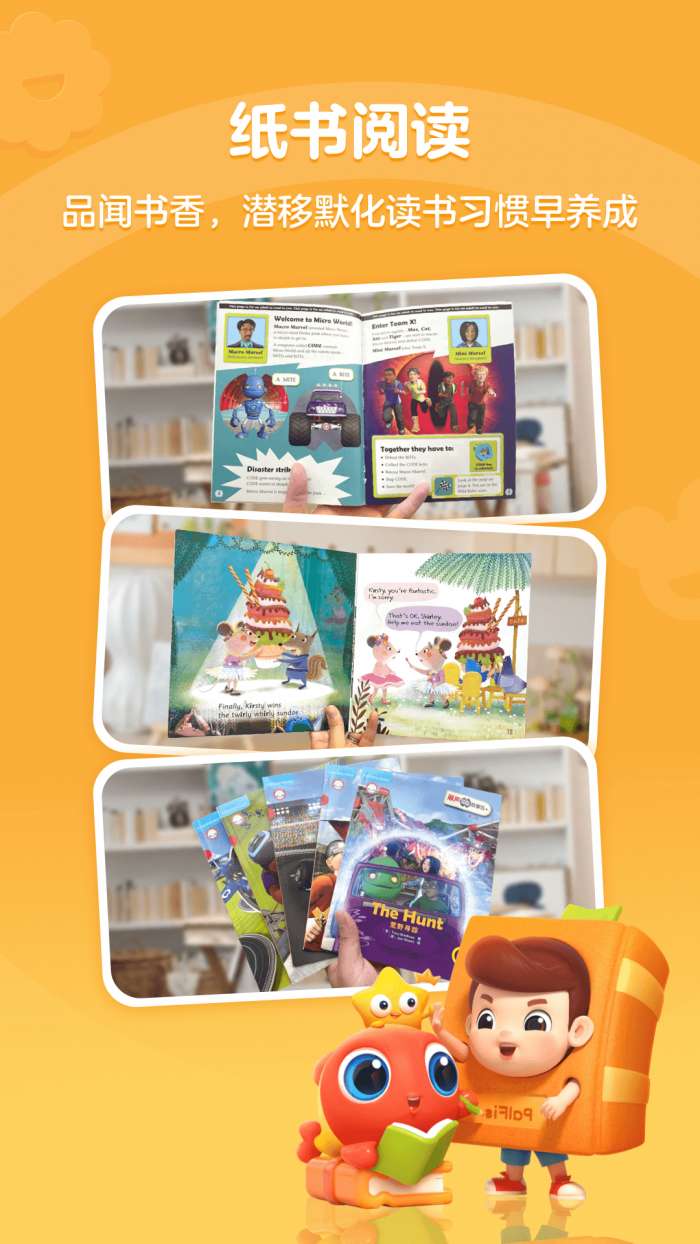 伴鱼阅读营应用内的绘本设计色彩斑斓,画面生动,情节更是扣人心弦,能够极大地激发孩子们的阅读兴趣,有效提升他们的阅读能力和理解水平。与此同时,伴鱼阅读营还特别倡导纸书阅读的理念,鼓励孩子们亲手翻阅书页,品闻书香,这种沉浸式的阅读体验有助于孩子们在轻松愉快的氛围中自然而然地养成爱读书的好习惯。