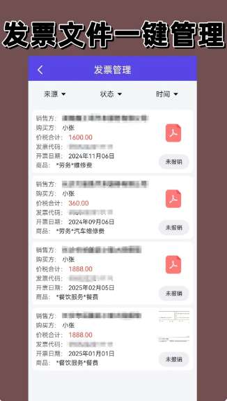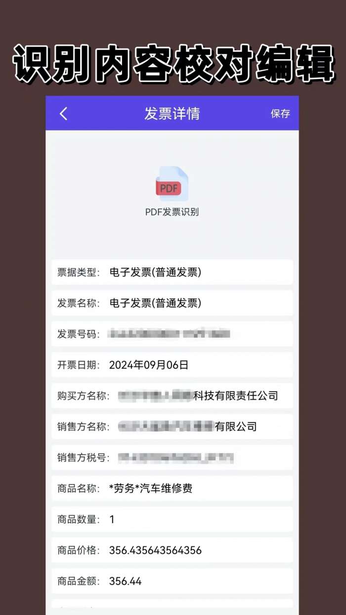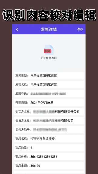 1、电子发票利用先进的OCR技术,只需轻轻一扫,即可快速识别并提取发票上的所有关键信息,包括发票号码、开票日期、金额等。