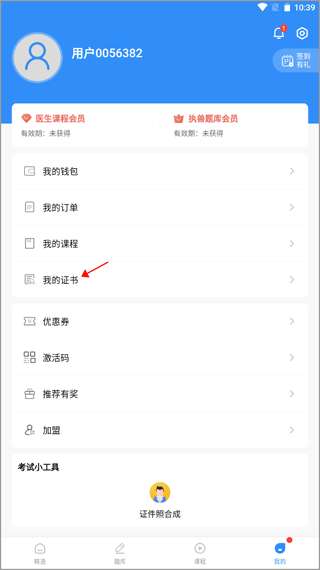 1、同样还是在【我的】界面上,点击“我的证书”。