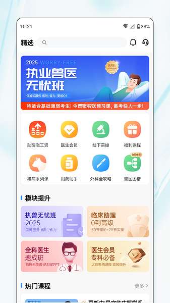 1、权威课程体系:以农业农村部最新考试大纲为基础,涵盖基础学科、预防学科、临床学科、综合应用四大模块,内容全面准确。