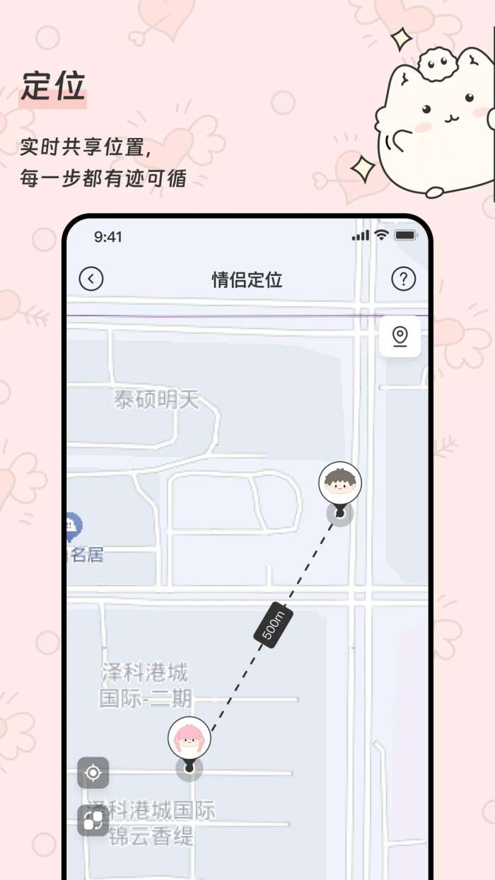 该软件提供实时情侣定位,允许实时位置跟踪情侣,使定位过程方便。