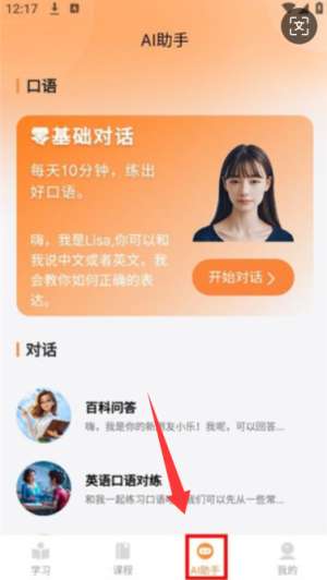 4、它提供在线人工智能练习课程,允许在线进行英语对话。