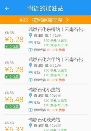 2、利用APP就近搜索加油站,优惠油站一览显示并快速导航。