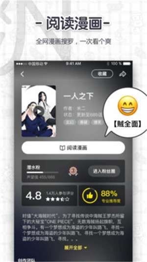 精彩漫画在线阅读软件推荐这是一款专为漫画爱好者设计的移动应用程序。它提供了丰富多样的漫画资源,涵盖了各种题材和风格,满足不同用户的需求。这款软件拥有直观易用的界面设计,使用户能够轻松浏览和搜索心仪的漫画作品。同时,它还支持离线下载功能,用户可以在没有网络的情况下继续阅读。这些软件还具备个性化推荐功能,根据用户的阅读历史和偏好,为其推送符合口味的漫画作品。这款软件不仅提供了高清画质的漫画图片,还优化了加载速度,确保用户能够流畅阅读。同时,它还支持多种阅读模式,如横屏、竖屏等,让用户能够根据自己的喜好选择合适的阅读方式。感兴趣的用户