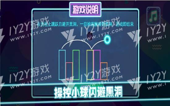 你需要操控小球在平台上面不断的弹跳,但是要记住躲避这些危险的黑洞,不要被吸进去,不然就会闯关失败。