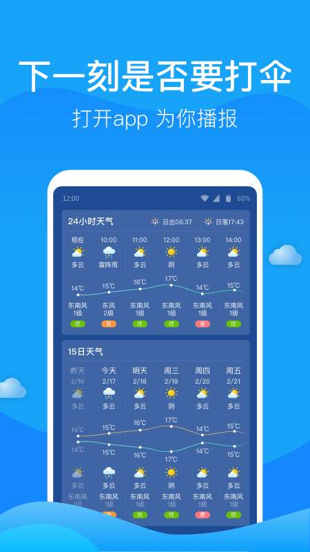 人人天气APP,为用户提供准确的天气预报,这里还能够一键查询空气质量等等,超级方便,不仅如此,一键就能够看到温馨的健康提醒等等,绝对能够让用户享受很多精彩的服务,轻轻松松就能够提前查看,提前准备很多有趣的东西,感受超多精致的生活。