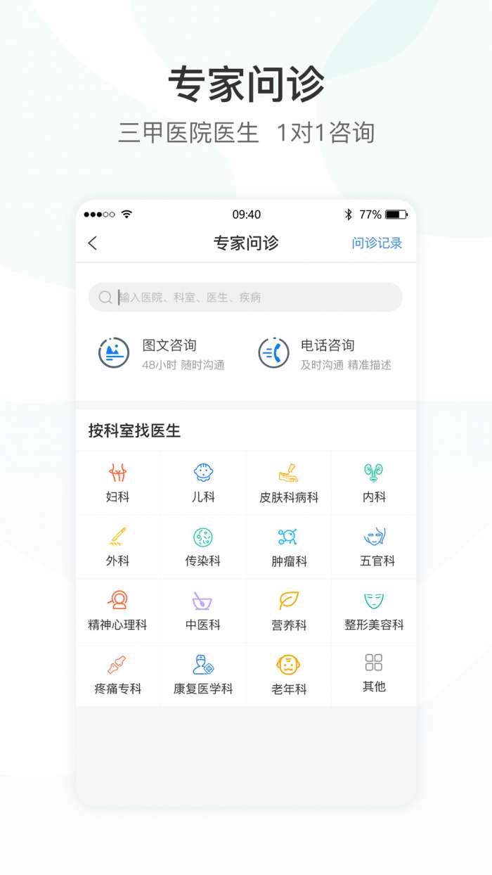 2、在线咨询:在线向专家提出健康相关问题并得到专家及时的指导。