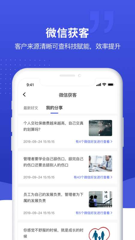 象保保APP,一个能够让用户轻松进行顾客管理的手机软件,这里拥有超多惊喜的内容,绝对能够给用户提供很多便利,让用户能够尽情享受,感受最不一样的精彩内容,这里拥有很多惊喜的东西,轻轻松松就能够在线进行管理和营销了,超级方便。