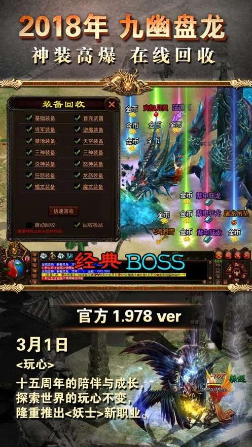 装备能回收的传奇手游大全今天,就让我为大家带来一份装备能回收的传奇手游大全,让我们一起探寻这些游戏所蕴含的无限可能。这些传奇手游在继承经典玩法的同时,融入了创新的元素。其中,装备回收系统就是一大亮点。在游戏中,玩家不再需要担心废弃的装备无处安放,因为它们都可以通过回收系统转化为珍贵的资源。这一设定不仅解决了装备堆积的问题,还让玩家在回收过程中获得额外的收益,真正实现了资源的循环利用。