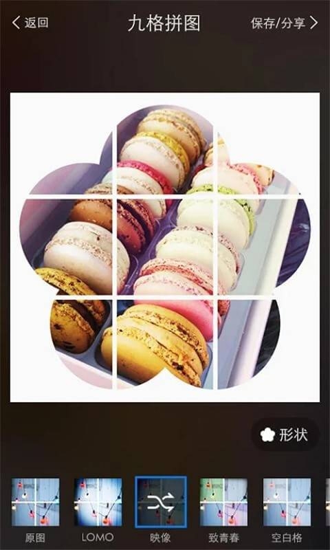 通过不规则的组合组成大图,分享到朋友圈、微博等地方。