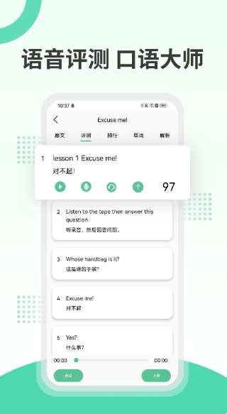 1、在专业语音评价中增加语音评价功能,使口语评价更专业,过程更高效,结果更详细,请你做自己的口语老师。
