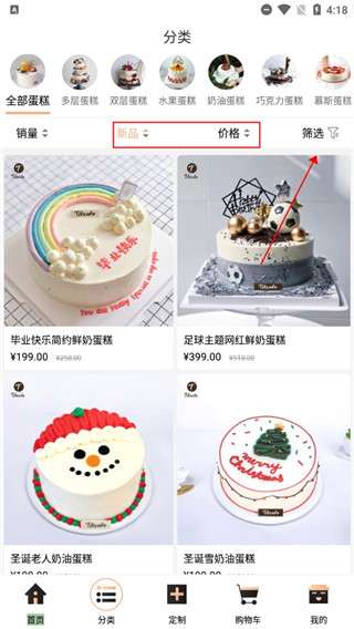 2、你可以在这里了解各种种类的蛋糕,还可以手动筛选具体细节。