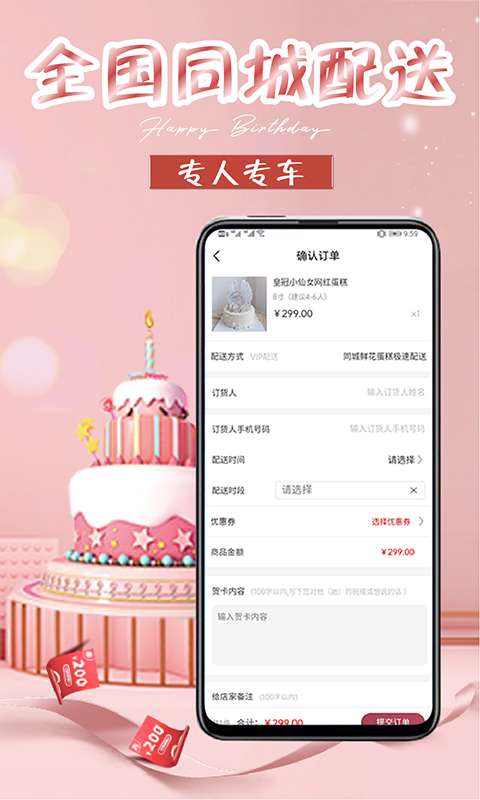 4、为城市用户定制的蛋糕可以免费送货上门,节省了送货费。