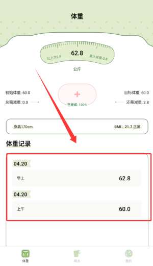 2、也可以记录体重变化。